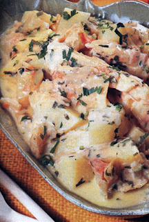 Deixe o bacalhau de molho 24 hs. Troque a água diversas vezes. Afervente-o, escorra e limpe. Tire as espinhas, a pele e desfie em pedaços grandes. Lave e deixe escorrer. Aqueça o óleo e refogue a cebola e o alho. Quando estiverem dourados, junte os tomates cortados e o bacalhau. Deixe cozinhar com a panela tapada por 10 minutos, em lume baixo. Junte as batatas. Quando estiverem macias, junte o leite de coco, o azeite e deixe por mais alguns minutos. Acrescente a salsa picada e os coentros.