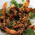 Retire o veio dos camarões descascados. Separe o ovo, junte a clara ao molho de soja numa tigela e bata. Deixe marinar os camarões durante cerca de 10 minutos nesta mistura.