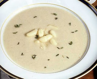 Corte as batatas e a cenoura em pedaços e coza-os na água temperada de sal. Junte-lhes parte do feijão e o tomilho, reservando algum para a decoração, e deixe cozer mais um pouco. Leve de novo ao lume e mexa bem. Adicione as natas ao puré anterior, rectifique-lhe os temperos e junte-lhe os feijões reservados. Sirva o creme polvilhado com o tomilho picado.