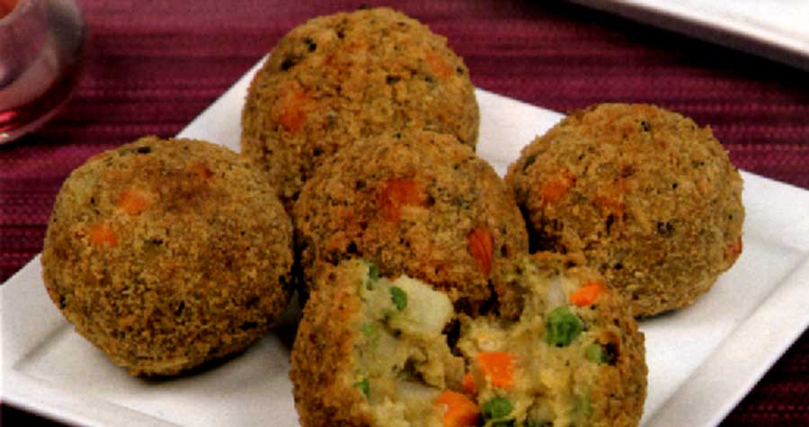 Coza os legumes em água fervente temperada com sal, por cerca de 5 minutos. Escorra e envolva com o miolo de pão. À parte, refogue o dente de alho picado na manteiga. Acrescente o preparado de legumes e depois a salsa picada e o queijo ralado. Tempere com sal, pimenta e cominhos. Incorpore um ovo batido e misture bem. deixe arrefecer e molde pequenas bolas. Passe-as pelos restantes ovos batidos e, de seguida, por pão ralado. Frite-as em gordura quente e escorra sobre papel absorvente.